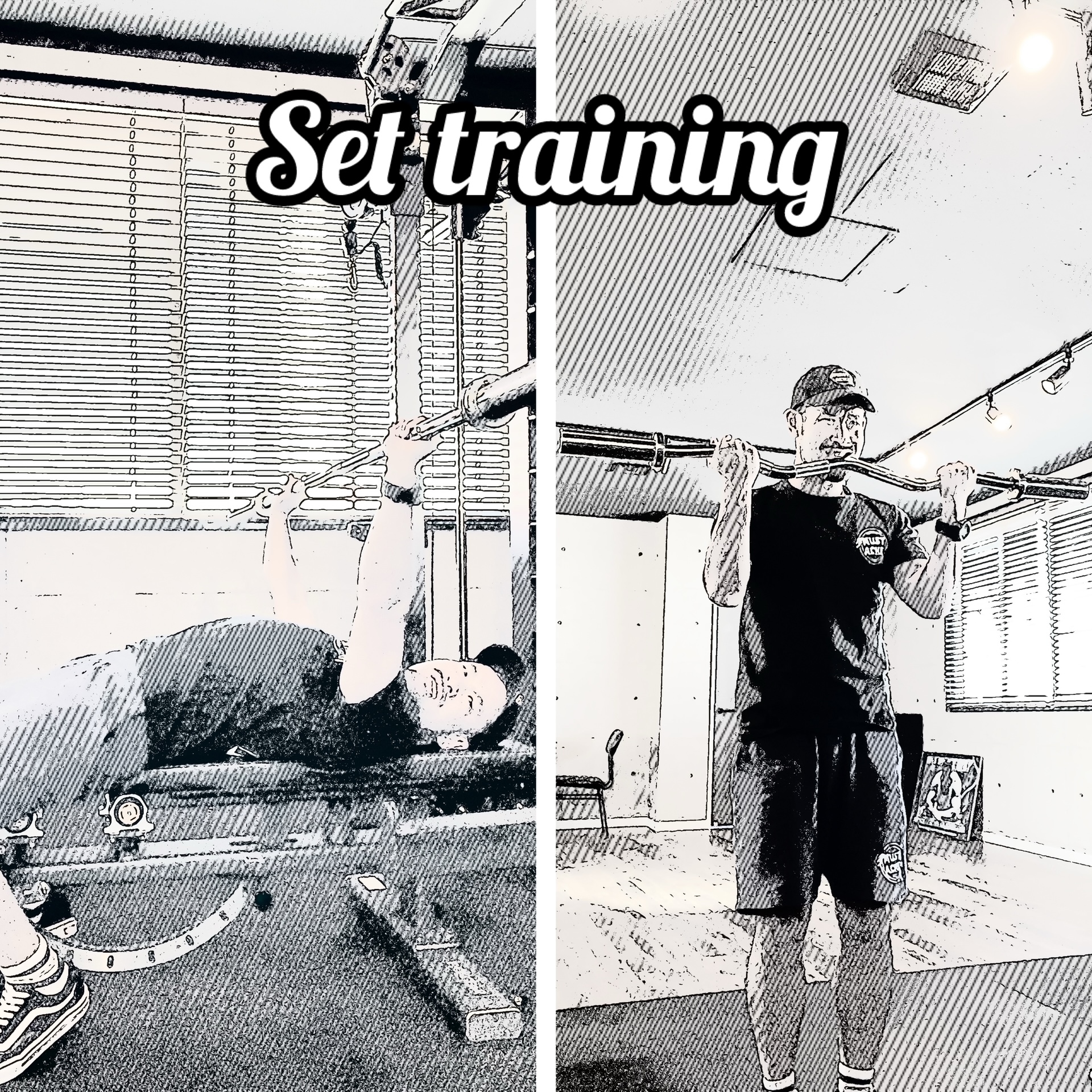 トライセット法とは同じ筋肉を休憩なしで3種目連続して行うトレーニング方法です。例えば、ベンチプレス → ダンベルプレス → ペクトラルフライの順に、大胸筋のトレーニングを3種目連続で行うなどです。